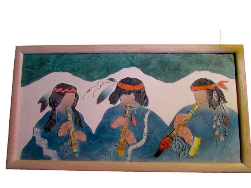 CONNIE BAKER Original Art "Medicine Flutes". Singed. Stucco Textured Original