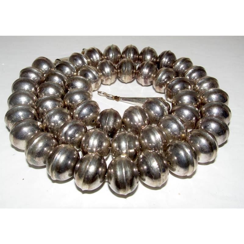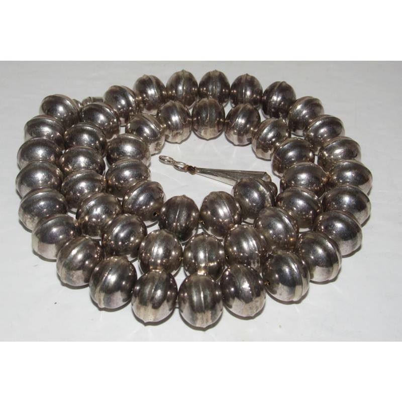 Early Navajo Pearls Necklace Hand Made Beads Sterling Silver 100g
