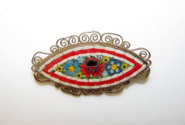 For your consideration is this colorful vintage Italian micro mosaic brooch in wonderful vintage condition. This fabulous piece features an intricately inlaid floral design accented with vibrant color scheme. The brooch measures 2" long by 1 1/2" wide. Marked 'Made in Italy" on the back. A stunning addition to any jewelry collection!