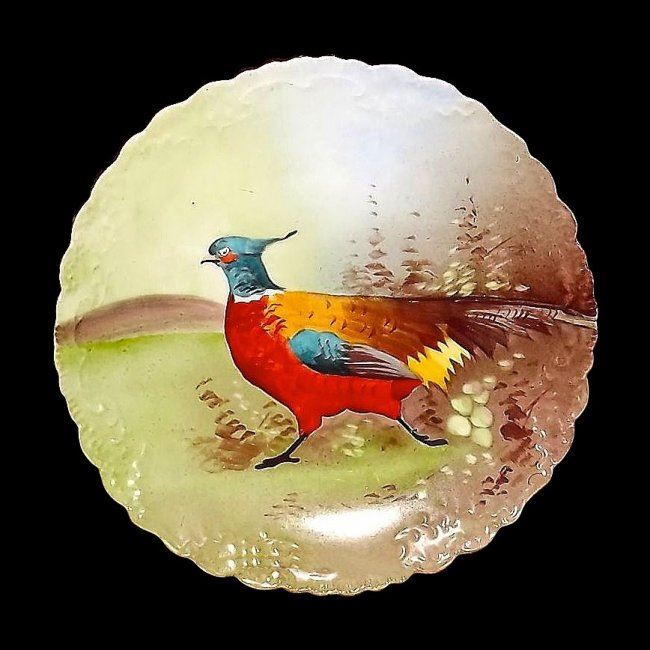 Dear Limoges collectors and fanciers, for your consideration is an antique, gorgeous, hand painted B&H LIMOGES game plate/charger in wonderful condition. This piece is from late 1890s to early 1900s. The piece displays beautifully with no chips, cracks, repairs or crazing and is in wonderful condition for a piece of this age. Please disregard the flash on the bottom of the plate. There is no wear to the finish. The plate measures 10.5" in diameter. The colorful design features a vibrant pheasant. This plate will make a wonderful addition to any fine china and porcelain collection!