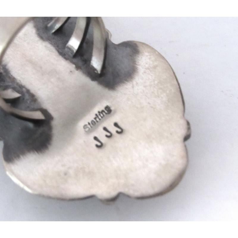 Introducing the striking Navajo Sterling Silver and Red Spiny Oyster Ring, handcrafted by the talented Navajo artist Jeff James Jr. This statement piece in size 8, measures approximately 2.5" in length and weighs a substantial 23g. The vibrant red spiny oyster shell, set within the sterling silver frame, captivates attention with its bold color and natural beauty. Jeff James Jr.'s meticulous craftsmanship is evident in the intricate details of the ring, showcasing the rich heritage of Navajo artistry. With its commanding presence and impeccable design, this ring is a remarkable addition to any jewelry collection, exuding confidence and style.