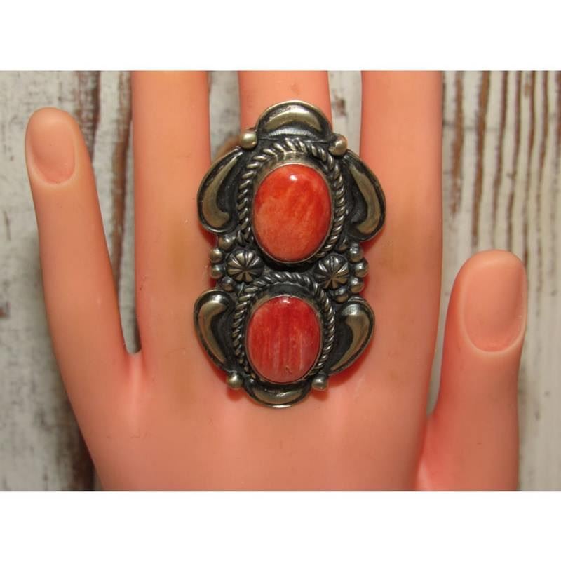 Massive Navajo Red Spiny Oyster Ring Sz 8 Sterling Silver J James