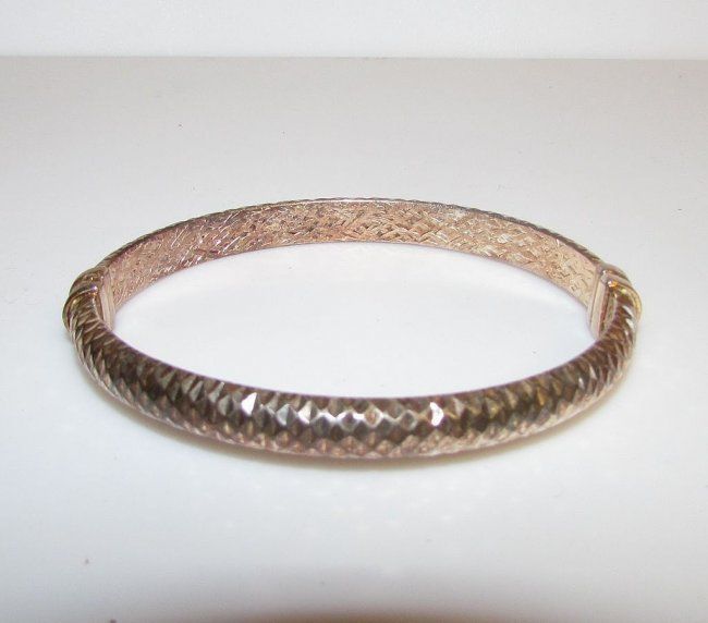 For your consideration is this fabulous vintage sterling silver bangle bracelet by Milor. This lovely designer piece features a stylish textured design in sterling silver with gold overlay. The inside circumference is about 7 1/2". Marked "Milor" in the inside. A stylish and elegant piece to add to any collection!
