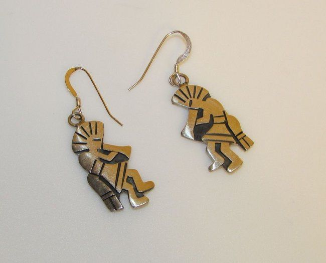 For your consideration is a pair of these wonderful vintage Hopi sterling silver earrings in great vintage condition. The earrings are a pierced type and feature an intricate design of a Kokopelli in sterling silver with a fabulous attention to detail. The earrings measure 1 3/4" long by 3/4" wide at the widest point. The pieces are stamped on the back with the artist's hallmark and have been tested for silver content. Fantastic addition to any jewelry collection!