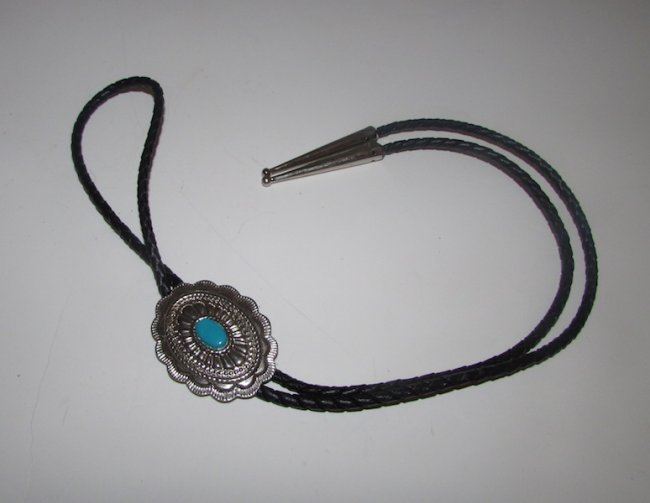 Vintage Native American Navajo nickel silver bolo tie. Good Condition