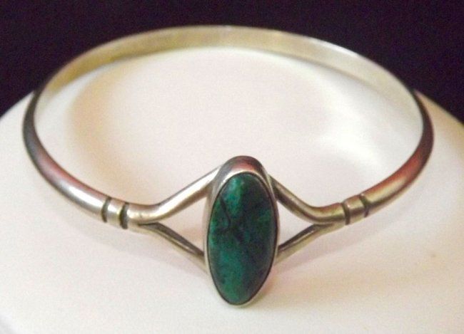 NO BUYER PREMIUM. EASY IN HOUSE SHIPPING! For your consideration is this gorgeous vintage Old Pawn Navajo Sterling Silver and Malachite Bangle bracelet. The bracelet features a traditional design in sterling silver accentuated with gorgeous deep green malachite cabochon. This bangle bracelet will fit wrists of different sizes. The bracelet is estimated to be from 1960s and is unmarked as many other Native jewelry pieces from that time. A fabulous addition to any jewelry collection!