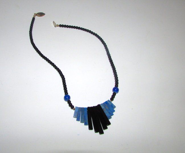 Vintage Native American Onyx Lapis Fringe Style Necklace