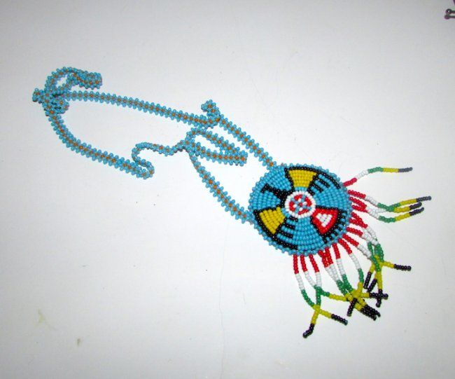 Vintage Native American Thunderbird beaded medallion necklace. Good Condition