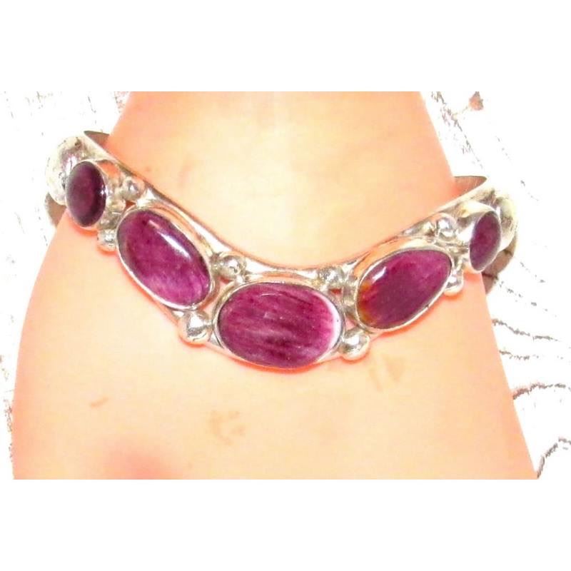 Navajo Davida Lister Purple Spiny Cuff Bracelet 925 Sterling Silver Signed