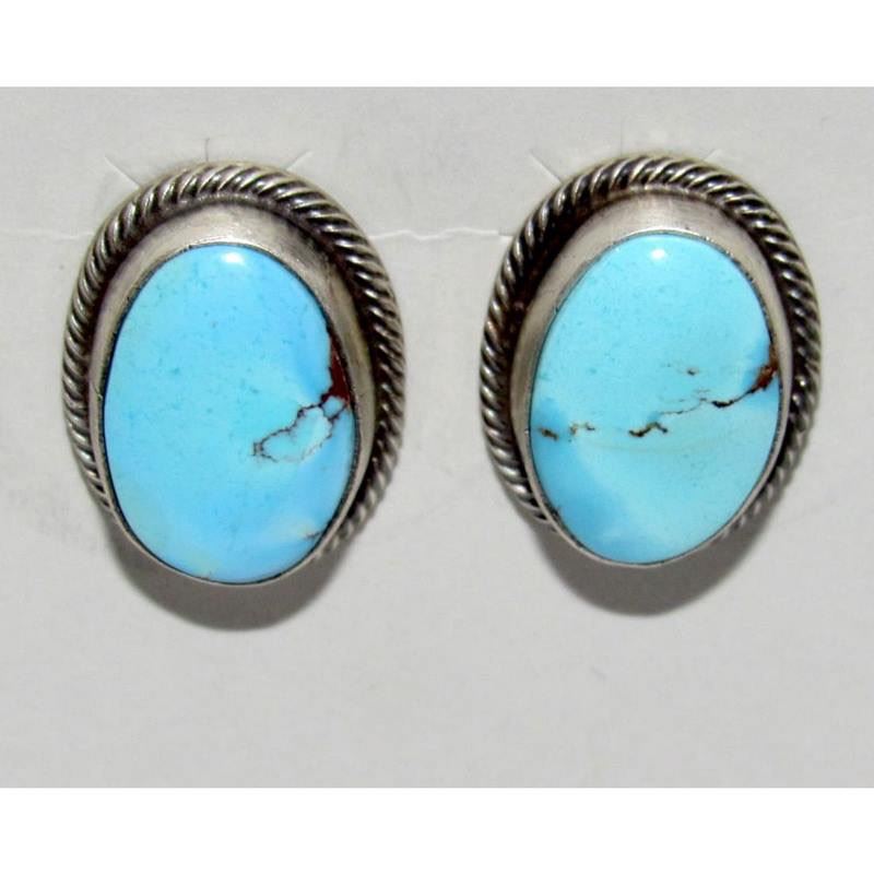 Navajo Golden Hills Turquoise Post Earrings Sterling Silver Tim Yazzie