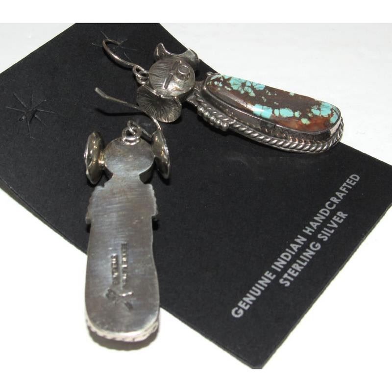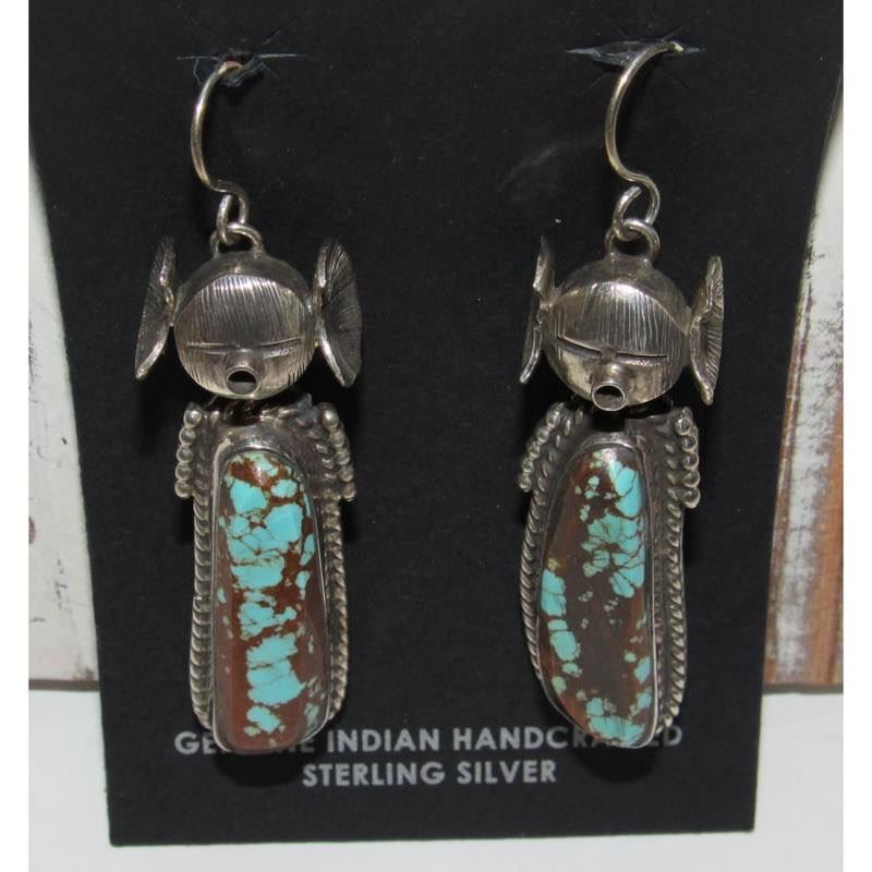 Navajo Kachina Earrings Boulder Numer 8 Turquoise Sterling Silver Bennie Ration