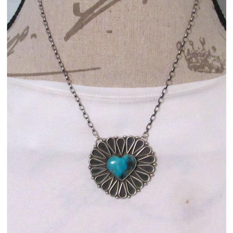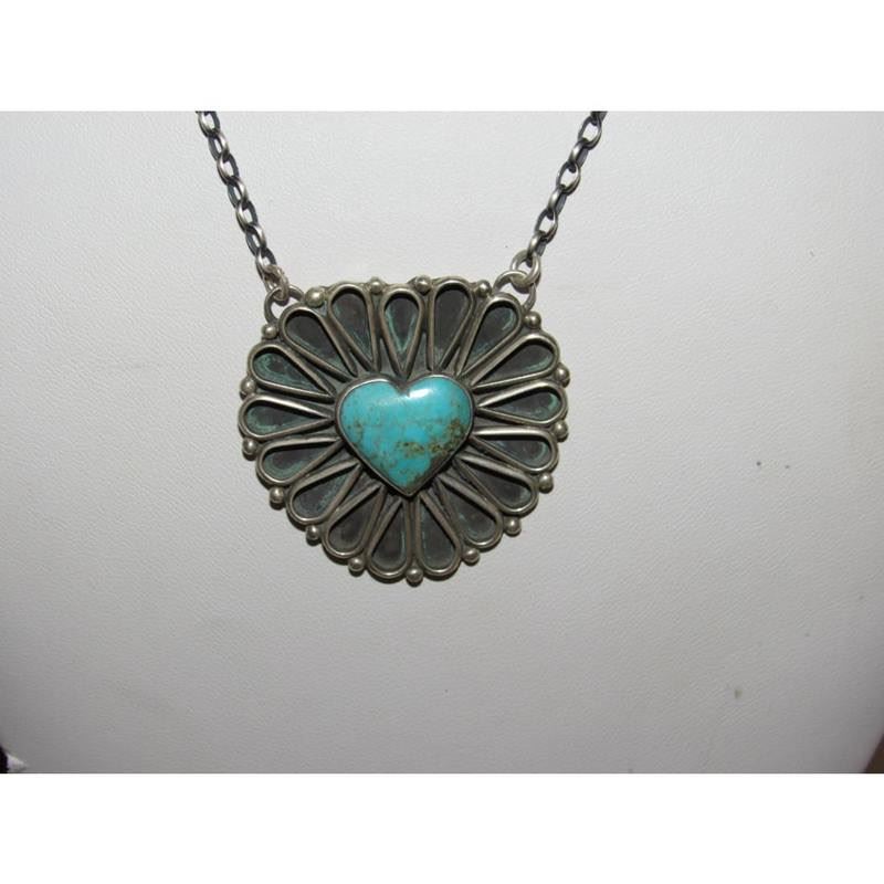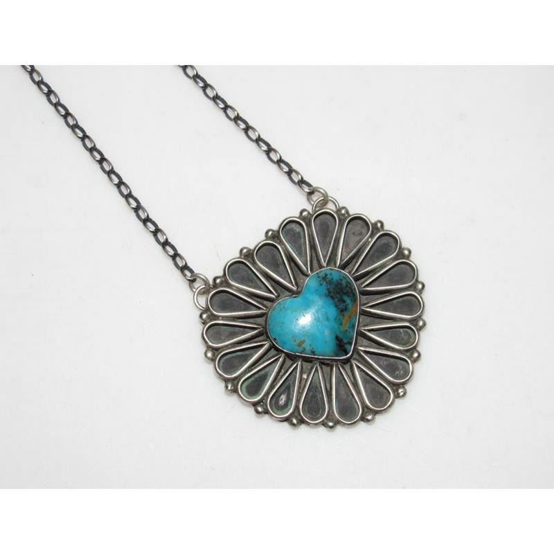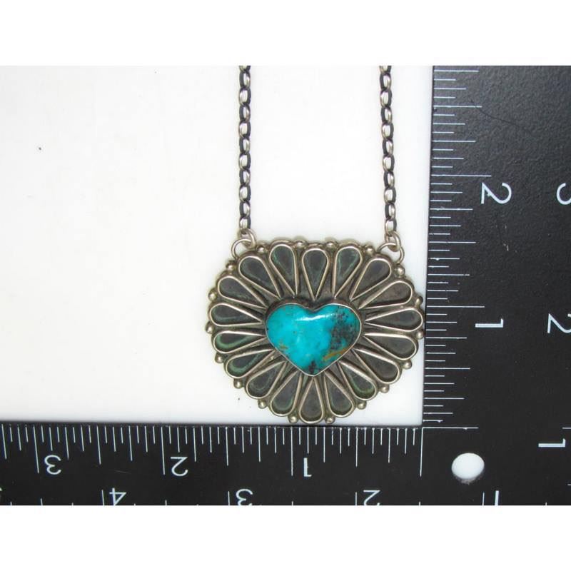 Navajo Kingman Turquoise Heart Bar Necklace Sterling Silver Native G. James