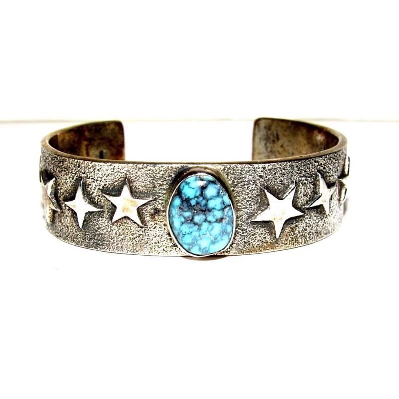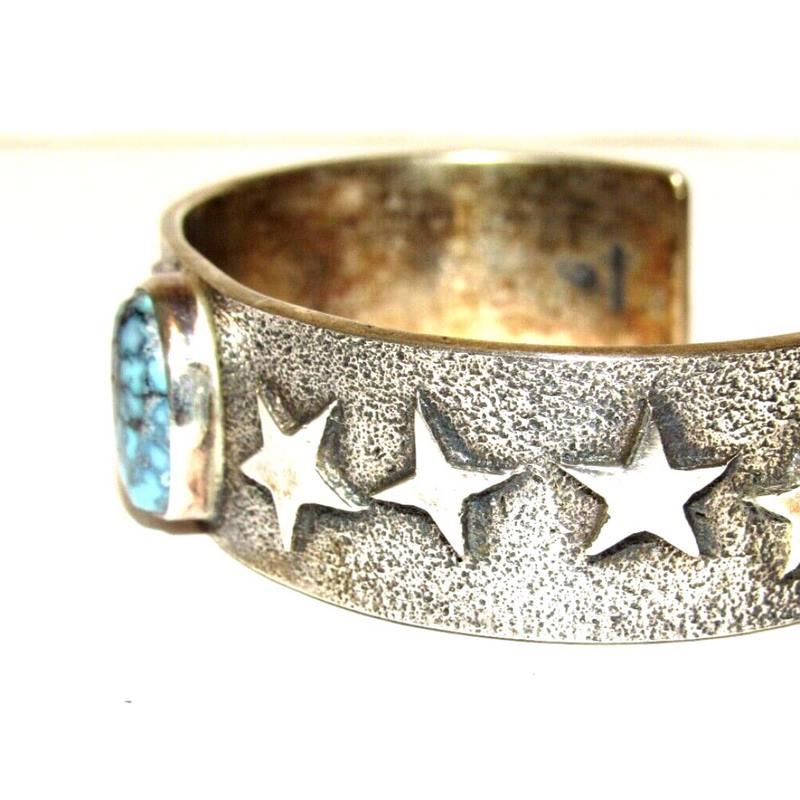 Navajo Kingman Turquoise Tufa Cast Sterling Stars Bracelet 7" Kevin Yazzie