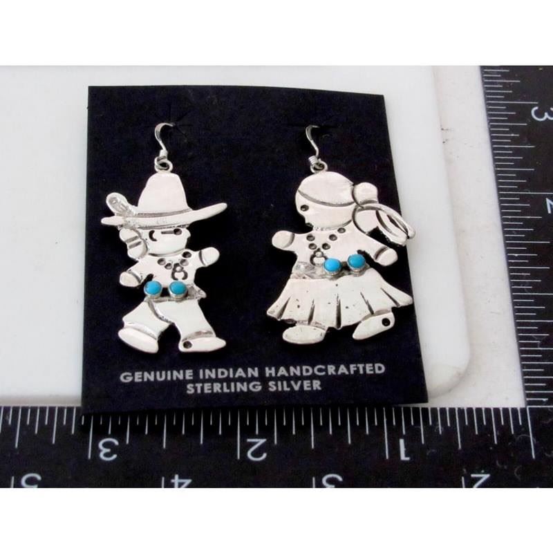 Navajo Men & Woman Dangle Earrings Sterling Silver Turquoise Song Dance Ceremony