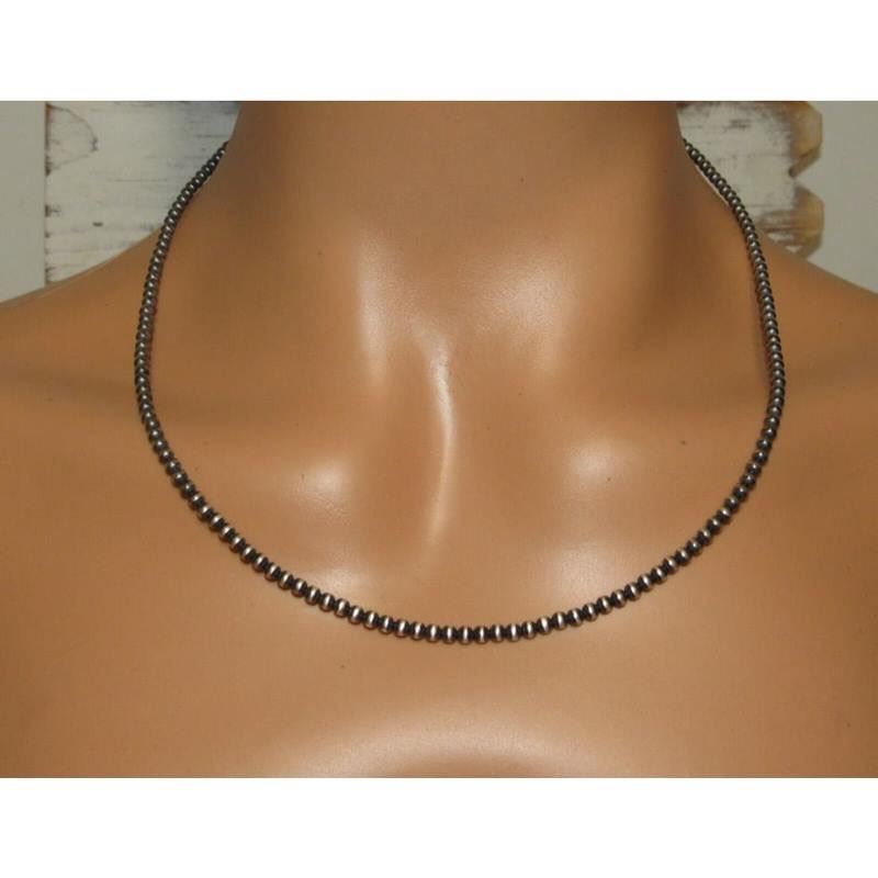Stunning 3mm Navajo pearls necklace. Measures about 20" long. Gorgeous, elegant & timeless piece that is sure to complement any outfit. Wonderful gift for anyone or yourself! :)
