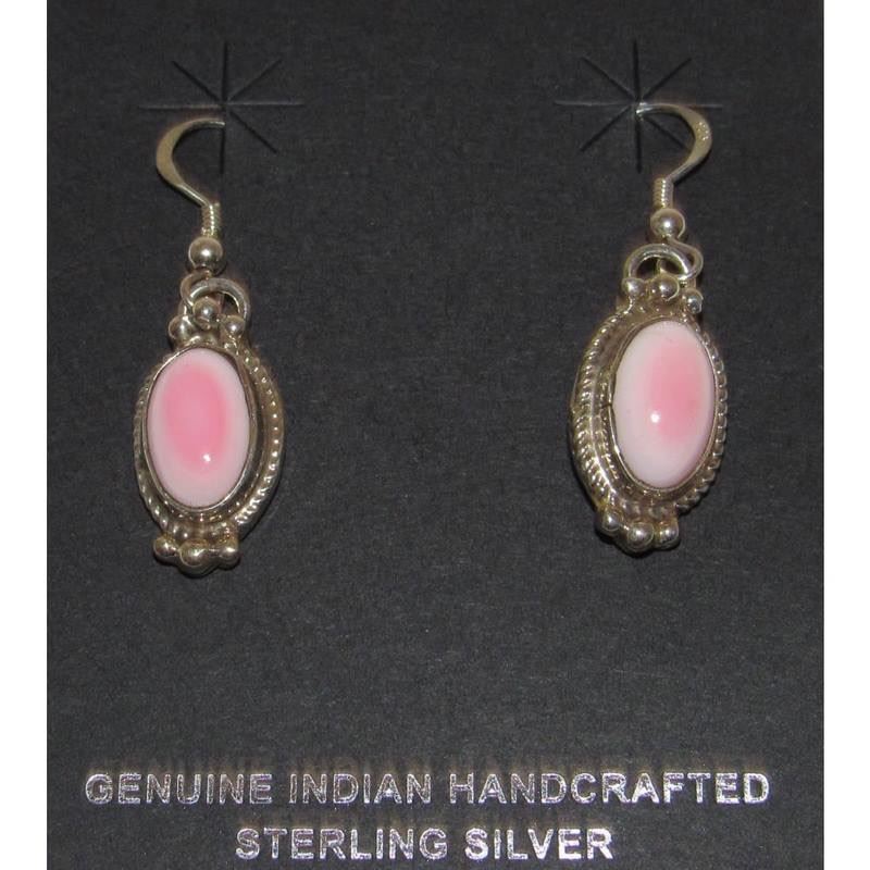 Navajo Pink Conch Dangle Earrings Sterling Silver Signed