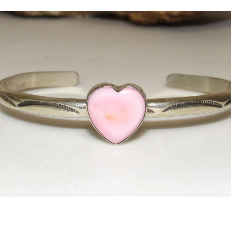 Navajo Pink Conch Heart Bracelet Stacker Sterling Silver Cuff G. Jones