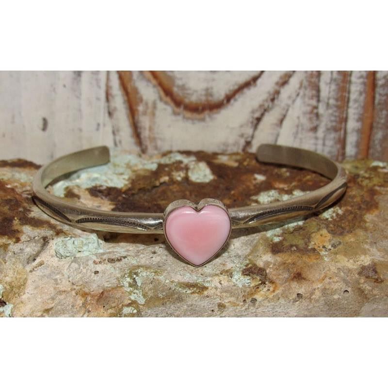 Navajo Pink Conch Heart Bracelet Stacker Sterling Silver Cuff G. Jones