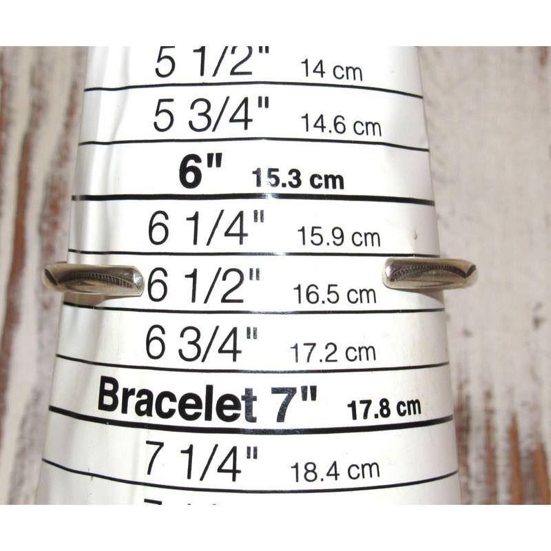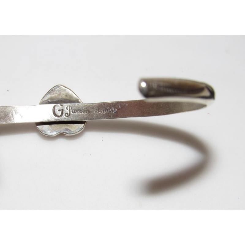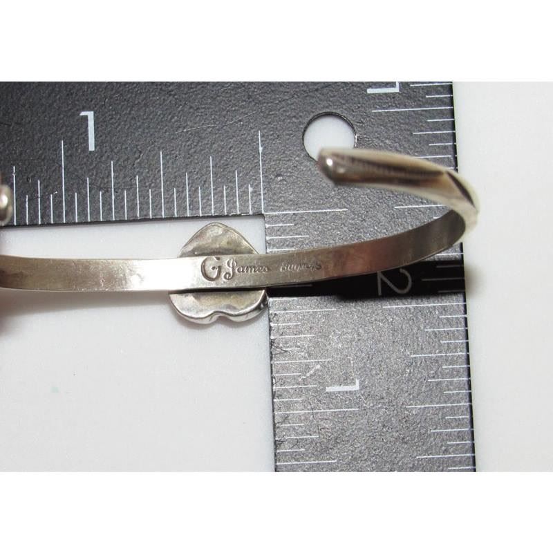 For your consideration is this fab Navajo sterling silver and gorgeous pink conch shell stacker cuff bracelet by the Navajo artist G. James. The cuff features a traditional, elegant hand stamped ingot design in sterling silver accented with a beautiful pink conch heart cabochon on the front. The inside circumference for the cuff is about 6.5" including the gap. The cuff can be carefully adjusted. Great to stack with other bracelets for that eye catching pink conch!