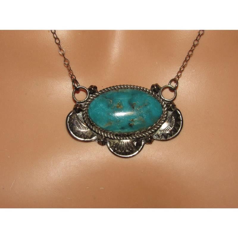 For your consideration is this gorgeous Navajo sterling silver and gorgeous Royston turquoise bar necklace by the collectible Navajo artist L. Goodluck. Stunning stone and intricately hand etched, detailed design in sterling silver. The necklace is about 20" long. The Royston turquoise pendant measures about 1 1/2" wide by 1" tall. Stamped "sterling" and is signed by the artist, features the artist's hallmark. Gorgeous stone, sterling chain necklace, collectible artist. Stunning example of collectible, wearable Native American art!