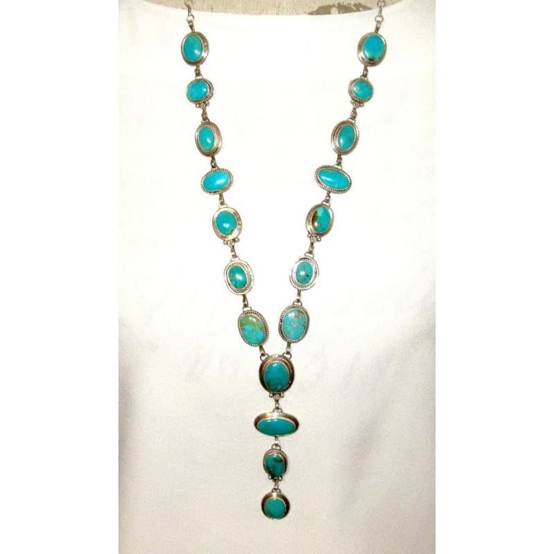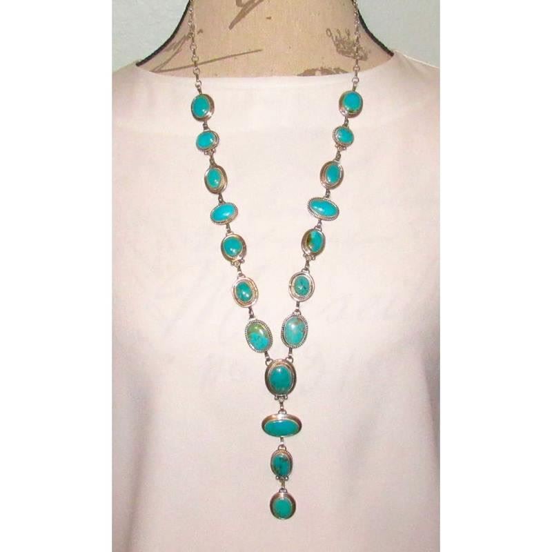 Navajo Royston Turquoise Lariat Necklace Sterling Silver K. Pino