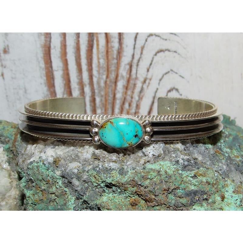 Navajo Royston Turquoise Sterling Silver Stacker Bracelet D. Yazzie