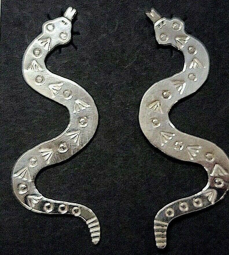 Wonderful Native American, Navajo sterling silver hand stamped snake design statement earrings by the collectible Navajo artist Melvin Francis. The earrings are a post pierced type and measure about 2.5". Collectible, wearable Native art.