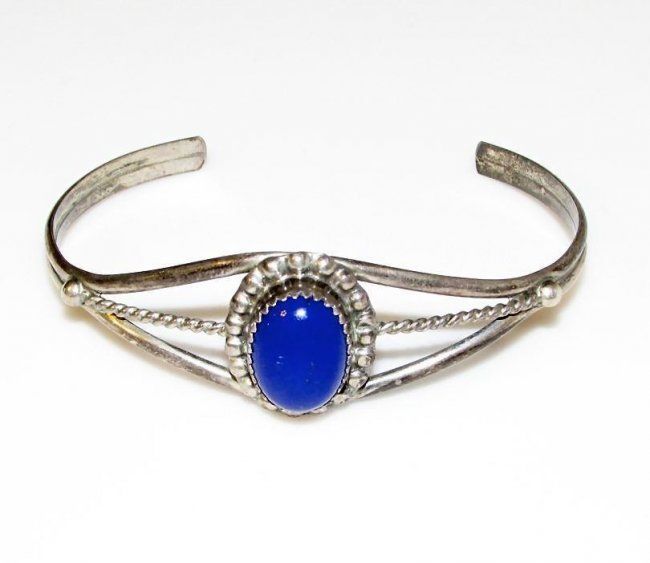 NO BUYER PREMIUM! EASY IN HOUSE SHIPPING!!For your consideration is this amazing vintage Native American Navajo sterling silver and lapis lazuli cuff bracelet in wonderful vintage condition. The beautiful bracelet features a traditional Navajo cuff design in sterling silver accented with a gorgeous deep blue lapis lazuli cabochon. The bracelet measures 1" wide at the widest point and the inside circumference is about 7 1/2" including gap. The cuff can be carefully adjusted. Stamped "sterling" on the back.