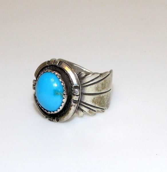 Exquisite vintage Navajo sterling silver and turquoise women ring in size 7. Marked "sterling" on the back. Fabulous piece!
