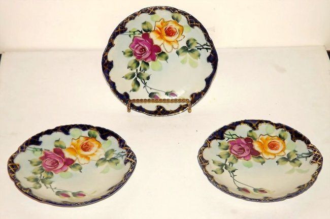 For your consideration is a set of 3 gorgeous signed Nippon plates in wonderful condition. These beauties offer a stunning cobalt blue moriage design accented with colorful flowers. The pieces display beautifully and are sure to look great in any display! Each plate is marked and measures a little over 6" in diameter.
