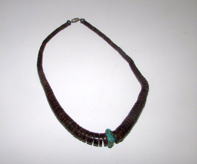 Vintage Old Pawn Native American shell disc and turquoise necklace. Good vintage condition