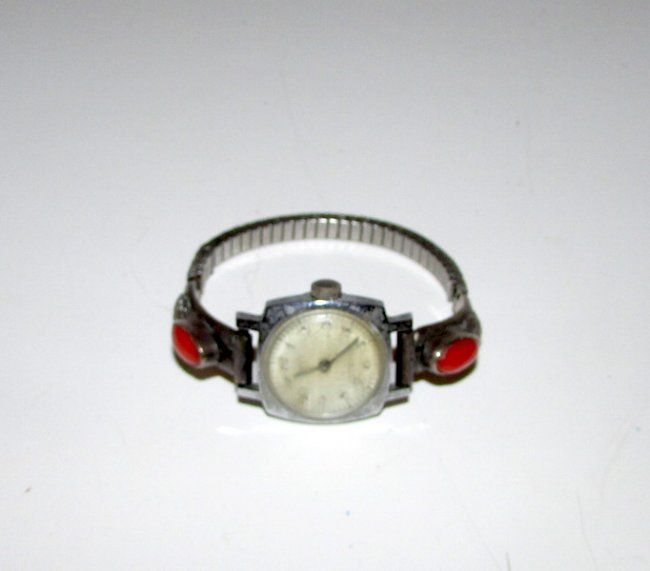 Vintage Old Pawn Navajo sterling silver coral adjustable watch band with watch. Watch will need a new battery. Watch band is signed by the artist on the inside.