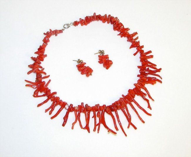 NO BUYER PREMIUM! EASY IN HOUSE SHIPPING!For your consideration is this gorgeous red genuine branch coral necklace and earrings in nice vintage condition. This fabulous set features a bright red necklace with dangling branch coral and matching pierced earrings. The set is truly a statement piece! The necklace measures and the earrings measure 16" long and the earrings measure 1" long.
