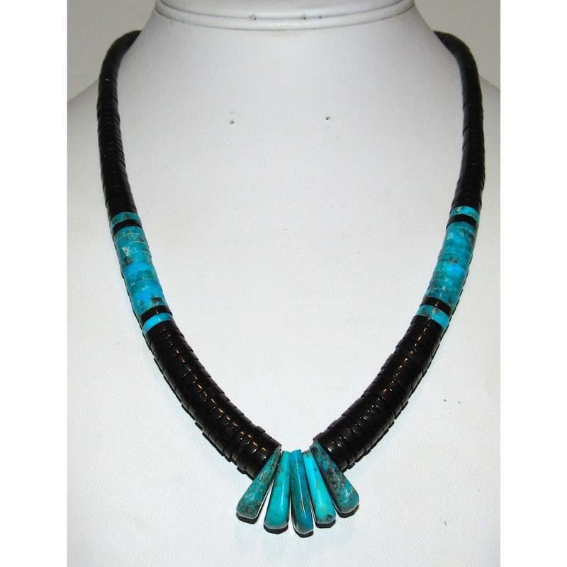 Santo Domingo Kingman Black Onyx Heishi Necklace Lupe Lovato
