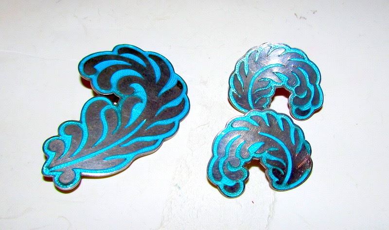 Spectacular vintage MARGOT DE TAXCO sterling silver and turquois brooch screw back earrings set. Superb condition. Marked sterling and Margot de Taxco.