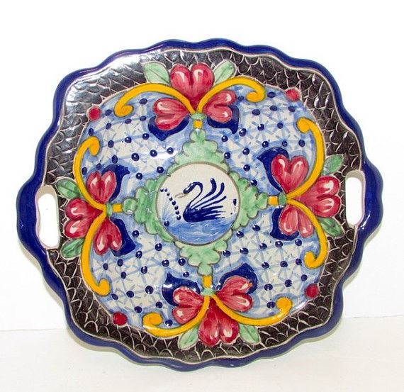 Spectacular vintage Talavera Mexican Pottery vibrant bowl. Hand coiled and hand painted. Unique, intricate design with relief.. Exceptional craftsmanship, collectible piece. No chips, cracks