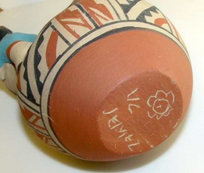 Vintage Native American Pueblo Pottery Wedding Vase circa 1960s. This wonderful piece feature a unique design with fantastic bride and groom representation figurines on each end to commemorate the wedding day celebration. A very special, rare and unique piece from 1960s to add to any collection! Marked VC and Jemez on the bottom. Measures 5" tall by 4 1/2" wide. No chips or cracks, some age appropriate finish wear.NO BUYER PREMIUM.EASY IN HOUSE SHIPPING.