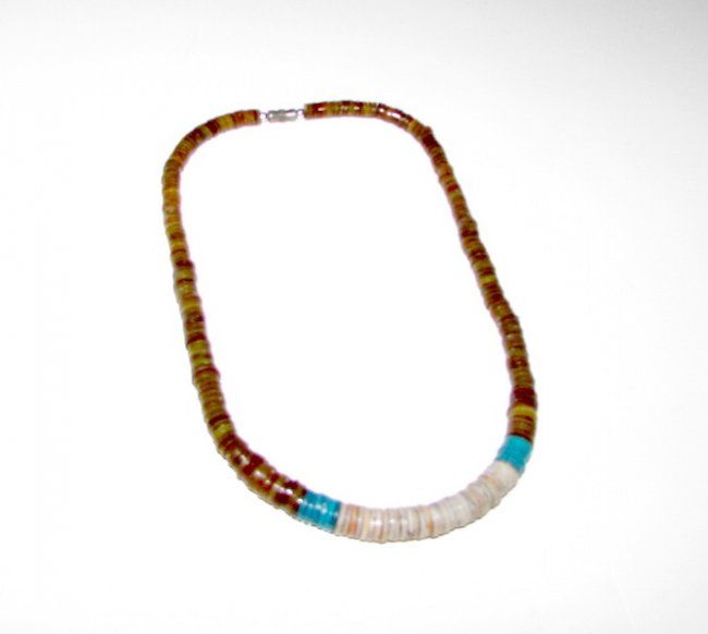 Vintage Old Pawn Native American shell disc and turquoise disc necklace. Good vintage condition