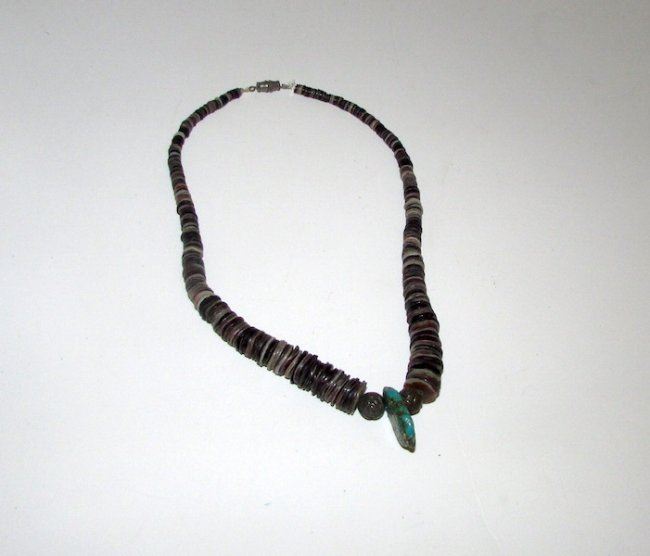 Vintage Old Pawn Native American shell disc and turquoise disc necklace. Good vintage condition
