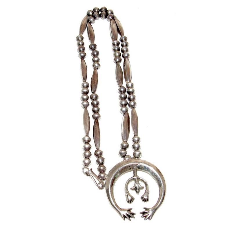 Vintage Navajo Squash Blossom Naja Necklace Sterling Silver Navajo Pearls