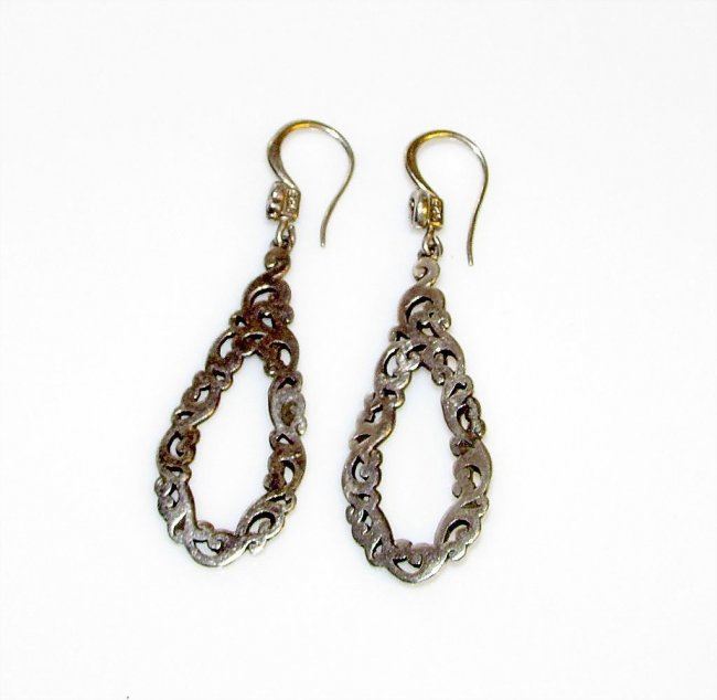 For your consideration is a pair of these beautiful vintage sterling silver filigree pierced dangle earrings in wonderful vintage condition with nice patina. These beauties measure 2" long and offer an intricate filigree design. Both pieces are Marked "925"